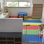 לרשות האורחים עם ילדים עומדים עריסות ועגלת תינוק.